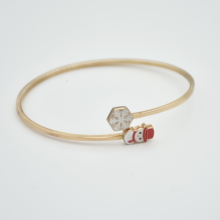 بنگل بچهگانه آدم برفی، با طراحی شاد و دلنشین خود، لبخند را به چهرهی کودکان شما هدیه میدهد. این بنگل از طلای ۱۸ عیار ساخته شده و با طرح بامزهی آدم برفی، انتخابی مناسب برای جشنها و مناسبتهای زمستانی است. طراحی زیبا و راحت آن، این دستبند را به گزینهای عالی برای هدیهای ماندگار و خاص برای کودک دلبندتان تبدیل میکند.
