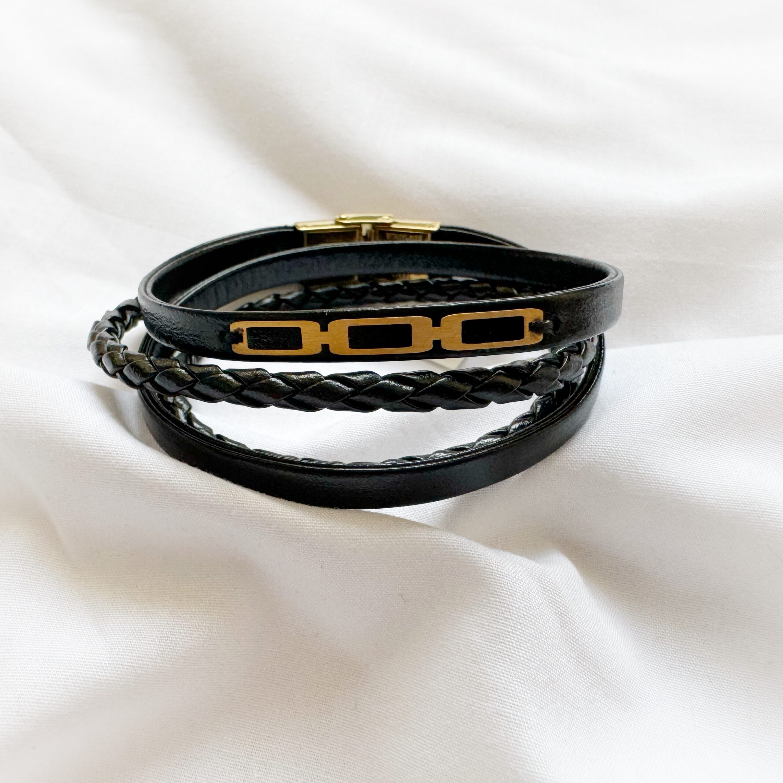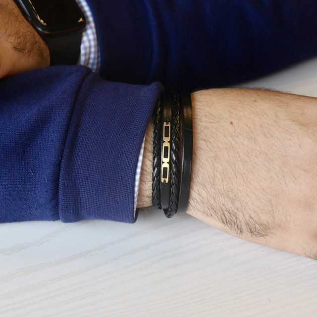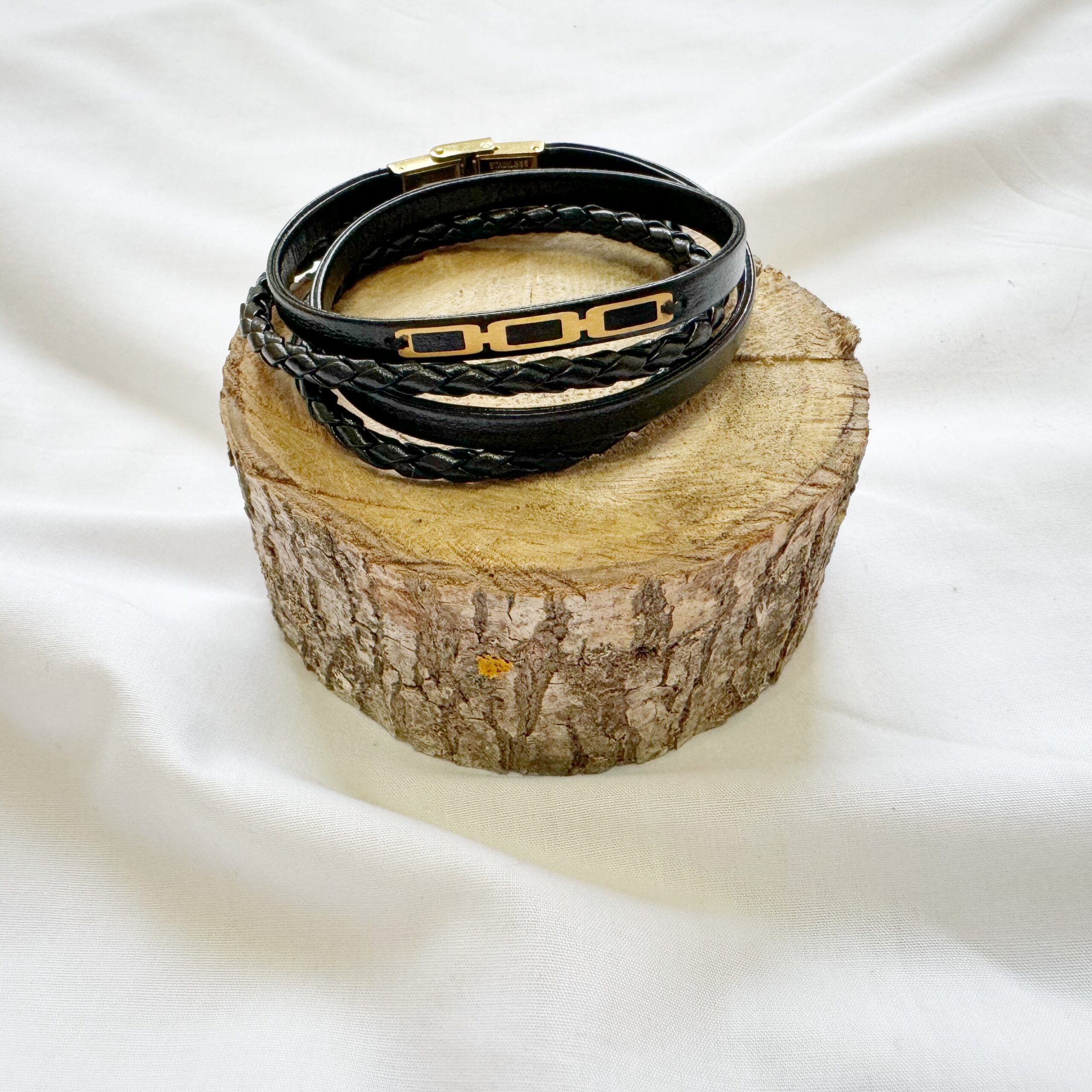 / دستبند طلا مردانه چرم مستطیل سه گانه