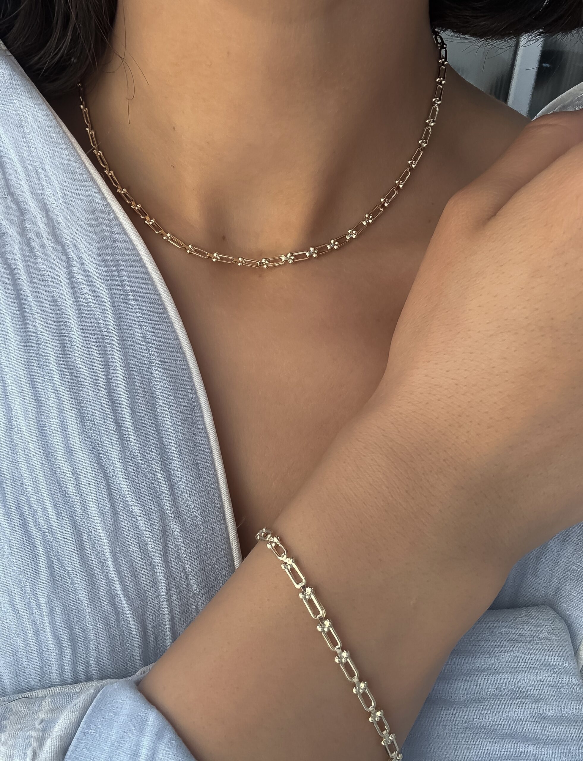 زنجیر طلا تیفانی نیو ما، نمادی از زیبایی و ظرافت است که با دقت و هنرمندی طراحی شده است. این زنجیر با استفاده از طلا با عیار بالا ساخته شده و میتواند به عنوان یک زیورآلات اصلی در هر مجموعه جواهرات شما عمل کند.