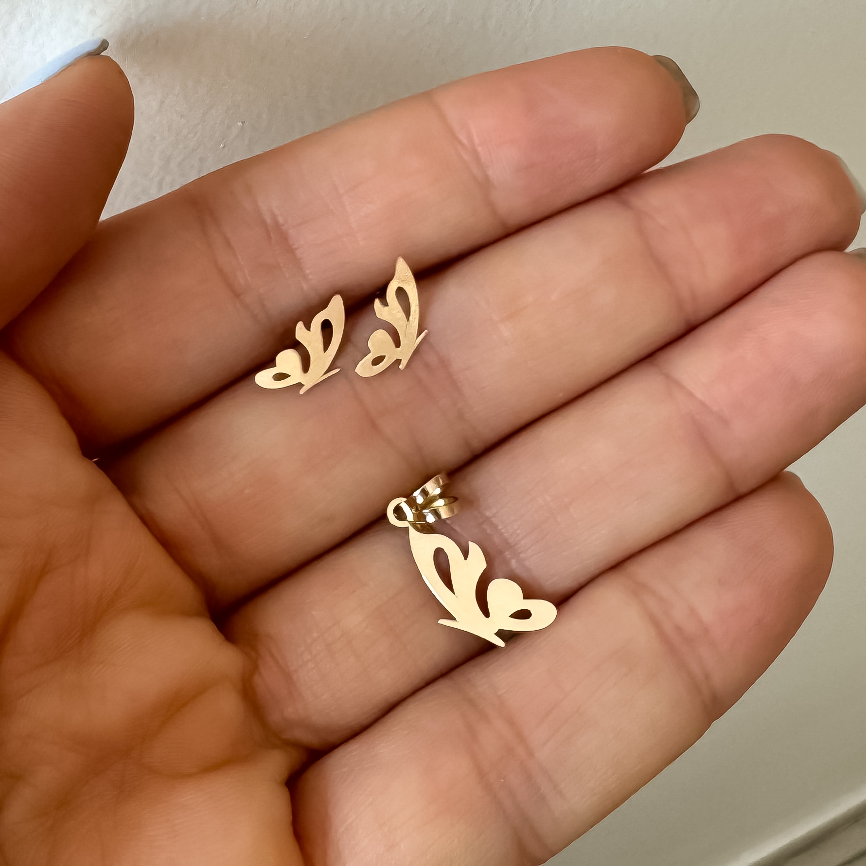 نیم ست پروانه، نماد زیبایی و ظرافت است که به سادگی میتواند هر استایلی را تکمیل کند. این نیم ست شامل گردنبند و گوشوارههایی با طراحی زیبا و منحصر به فرد است که هر کدام به تنهایی جلوهای خاص دارند.