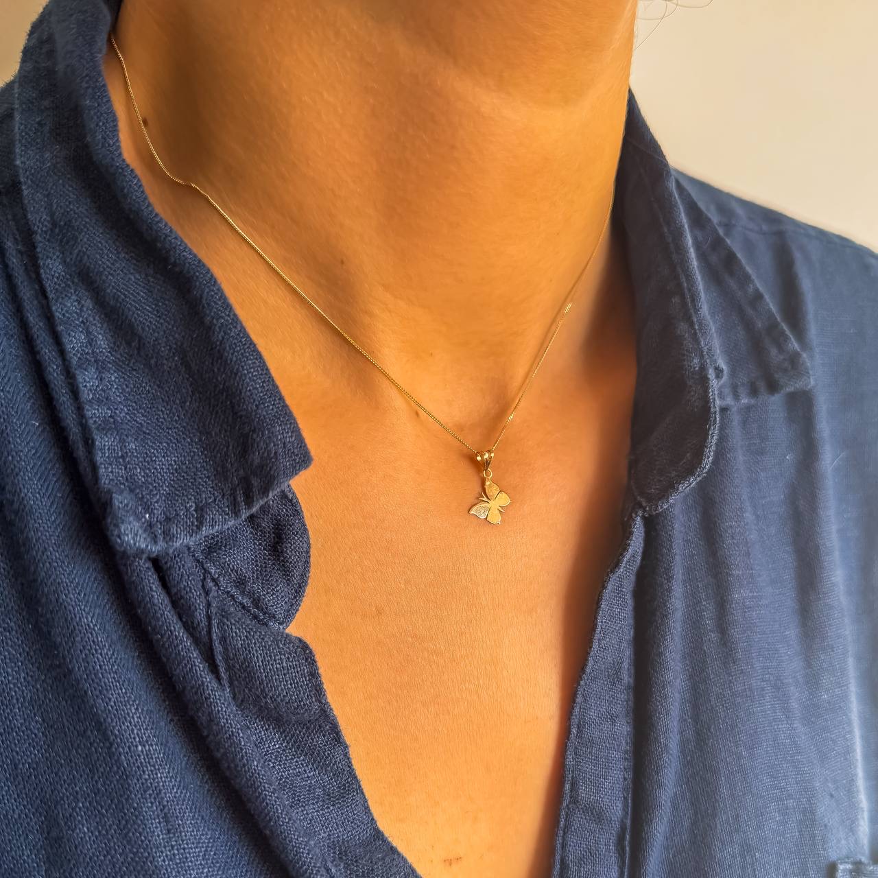 پلاک پروانه توپر با طراحی چشمنواز و فرم کامل، الهامگرفته از طبیعت و نماد تحول، آزادی و ظرافت زنانه است. این پلاک از طلای ۱۸ عیار ساخته شده و با طراحی یکدست و براق، جلوهای لوکس و درخشان به استایل شما میبخشد.